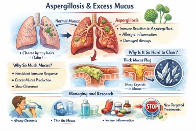 People living with aspergillosis often say that mucus is one of the hardest symptoms to manage — thick sputum, coughing fits, plugs that feel “stuck”, and flare-ups that seem to come out of nowhere. This explainer brings everything together in one place: what mucus is for, why aspergillosis causes so much of it, why it becomes abnormal, and what current and future treatments aim to do.