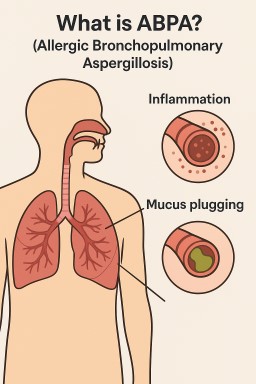 In asthma or ABPA, the immune system overreacts to harmless triggers such as Aspergillus spores, pollen, or dust, causing airway swelling, mucus build-up, and breathlessness.