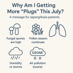 Many patients with aspergillosis get more mucus at this time of year — even when the sun’s out! Don’t assume it’s “just the weather.” Sometimes it’s a sign that your lungs or sinuses are reacting to invisible spores in the air.