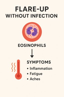 When things go wrong: Excessive inflammation raises blood markers such as CRP or eosinophils, often seen during ABPA flare-ups or infection.