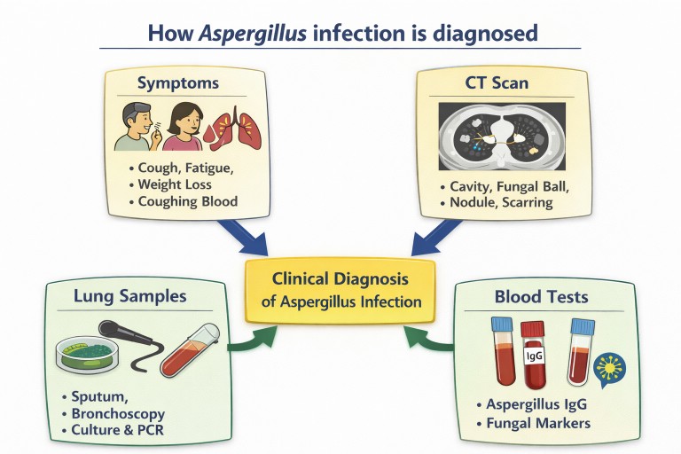 Who is this page for? Patients, carers, general practitioners, and non-specialists who want to understand how Aspergillus infections are diagnosed.