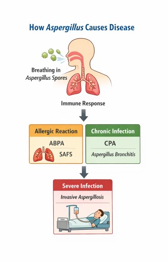 In some people, especially those with asthma or related airway disease, the immune system overreacts to Aspergillus. The fungus may not be invading tissue, but it can still trigger substantial inflammation and symptoms.